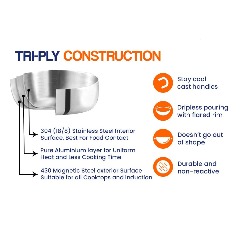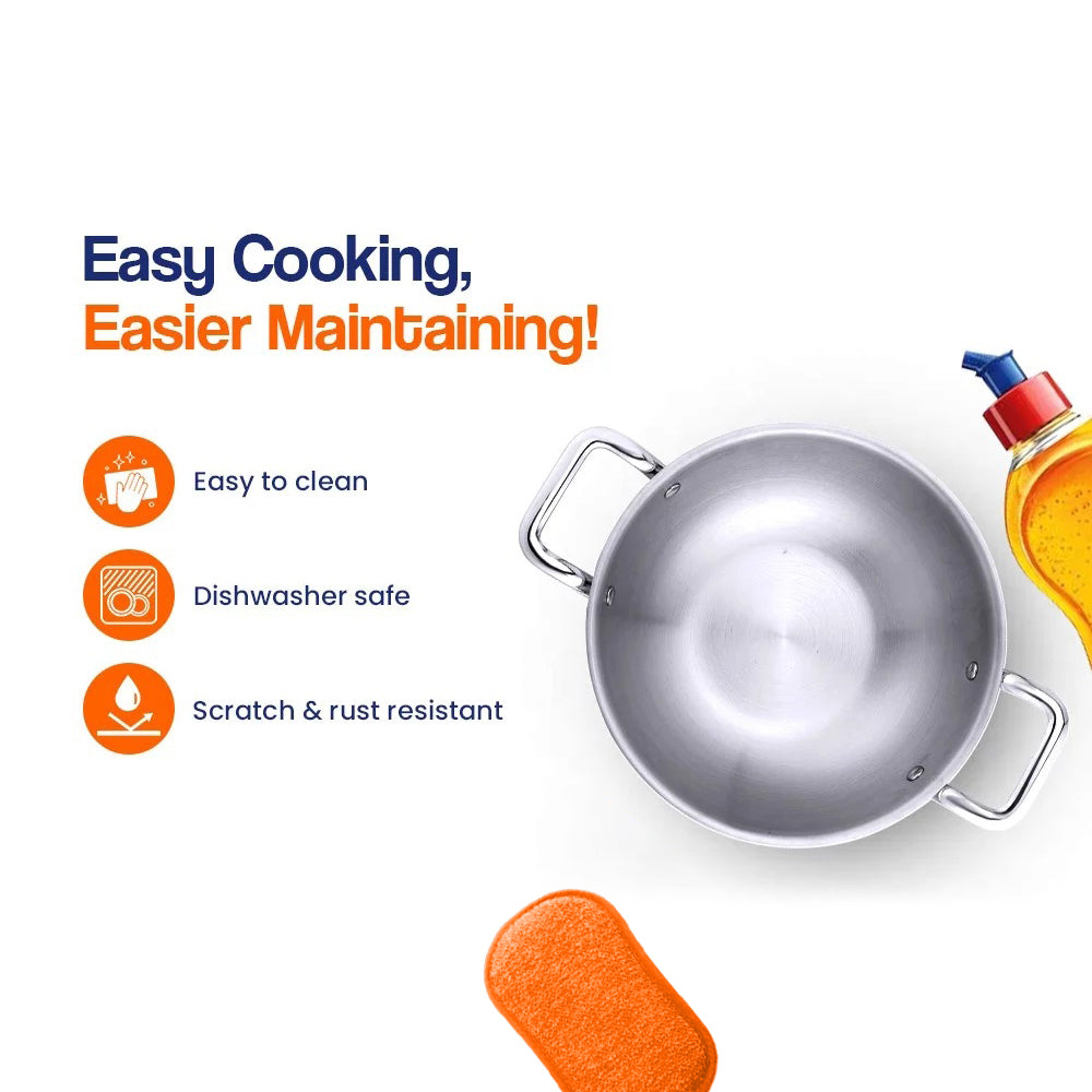 Elevate your cooking with premium Triply Kadai crafted with precision for everyday cooking needs for all family sizes. Here’s what makes it special: