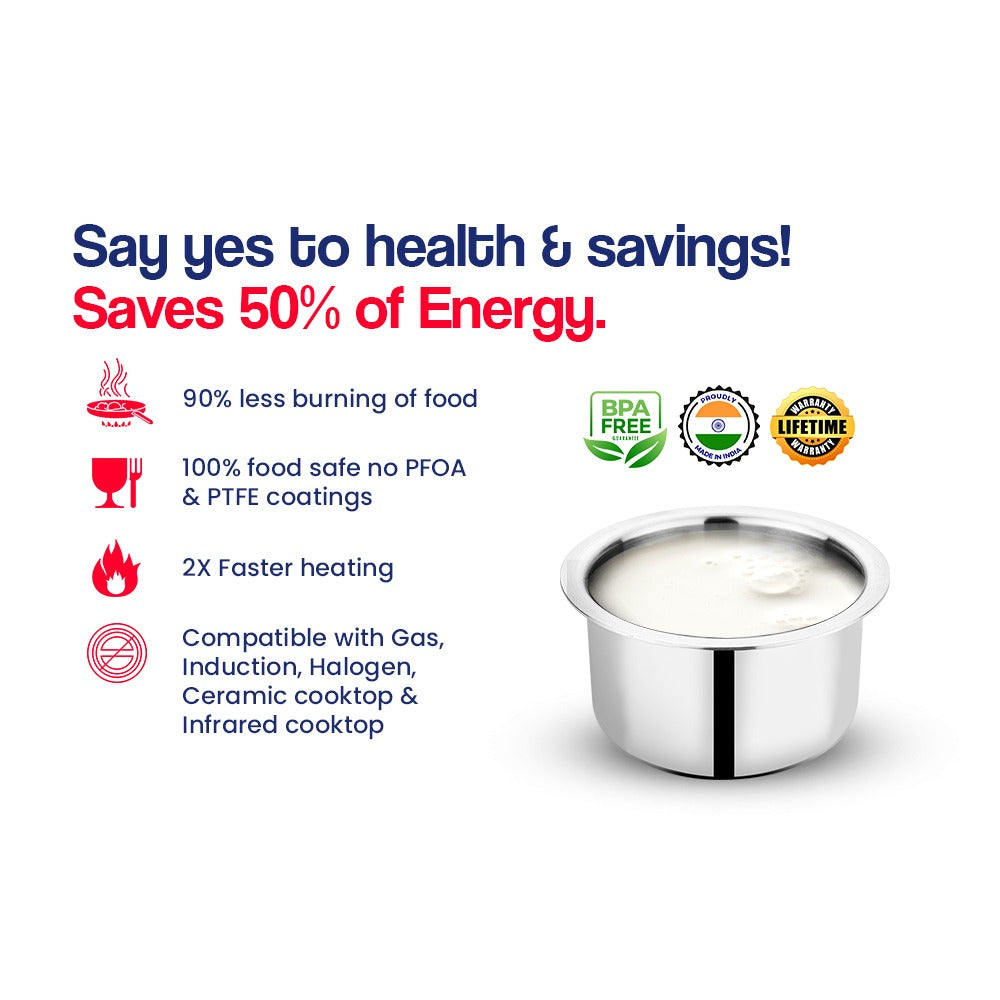 Healthy & Easy Cooking: The Triply Tope facilitates minimal oil usage and even heat distribution which ensures healthier cooking without compromising on taste or burning/sticking of food.
