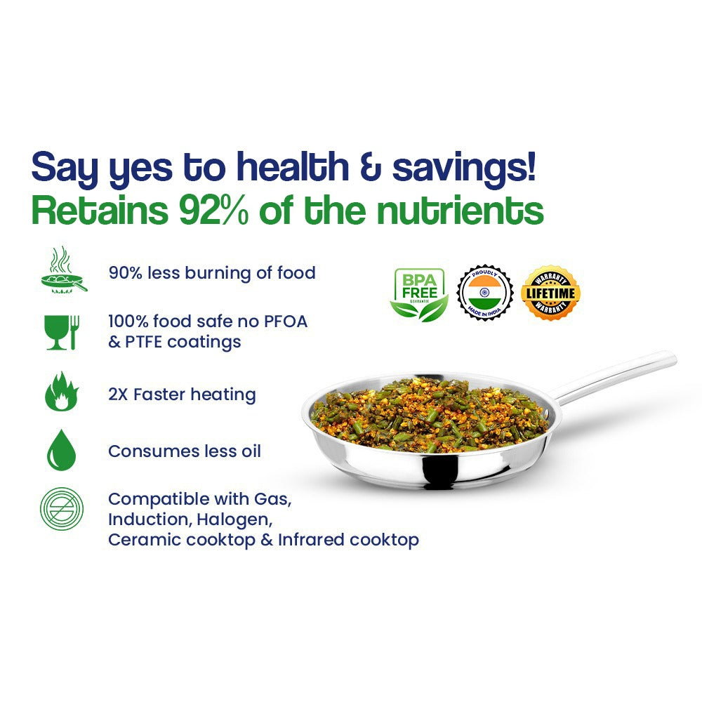 Triply cookware is naturally non-stick so the chances of burning or sticking of food is extremely low.